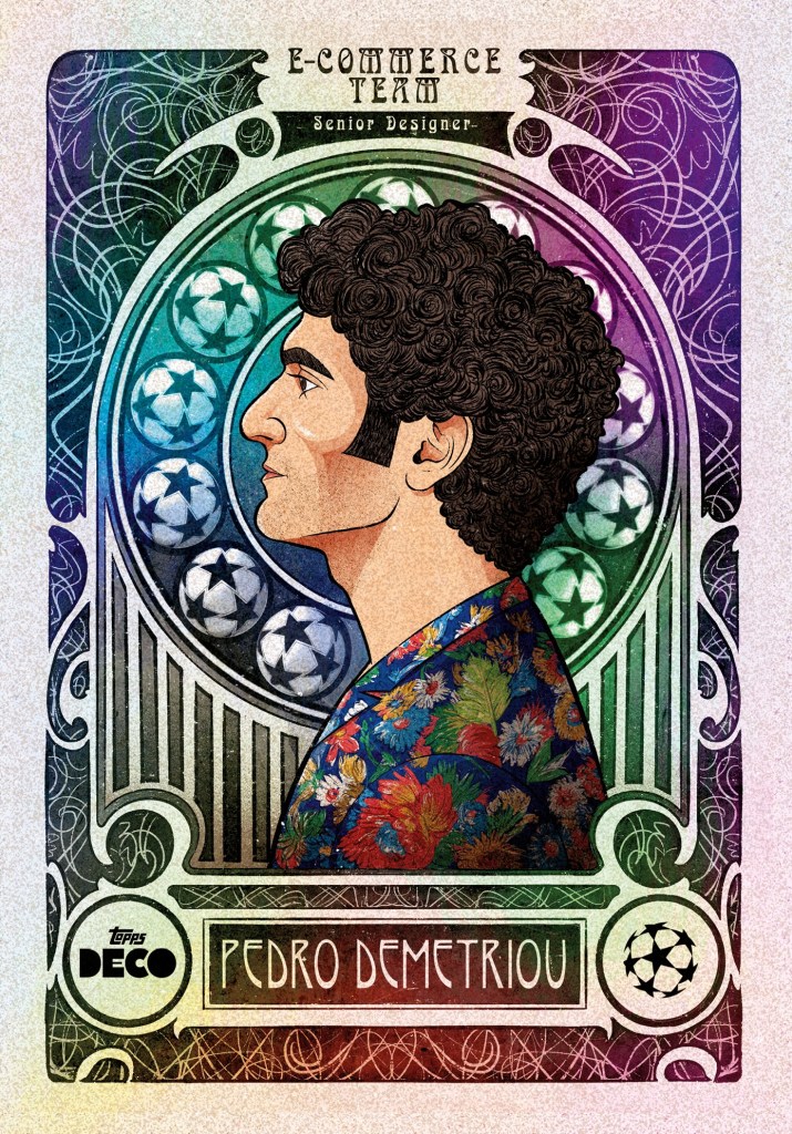 Pedro Demetriou: Merci beaucoup de de m’avoir reçu et pour les compliments ! Je suis Senior Designer l’équipe de Ecom de Topps UK et je travaille ici depuis 2021. Mon travail, en termes simples, consiste à créer des cartes et des concepts pour nos produits vendus exclusivevelent sur nos sites internet.