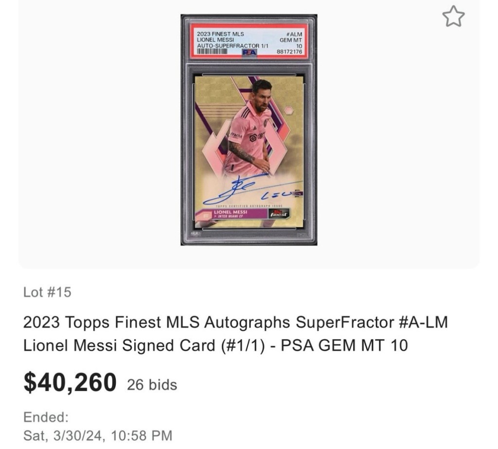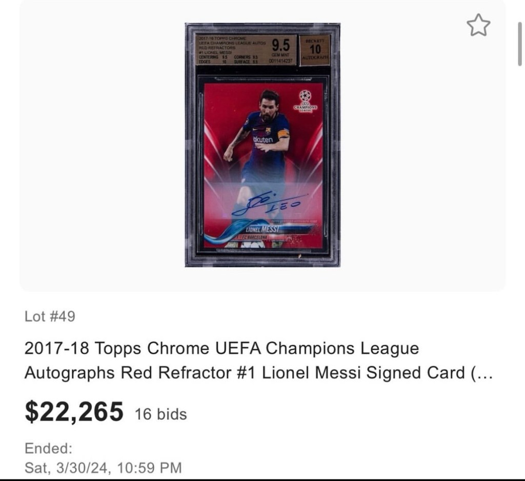 Dans la nuit se samedi à dimanche plusieurs très belles cartes de Leo Messi se sont vendues. En effet plusieurs enchères se terminaient sur le site de Goldin (goldin.co), une référence dans le monde des cartes de sport. Un documentaire Netflix sur Ken Goldin est même disponible depuis l’an dernier.