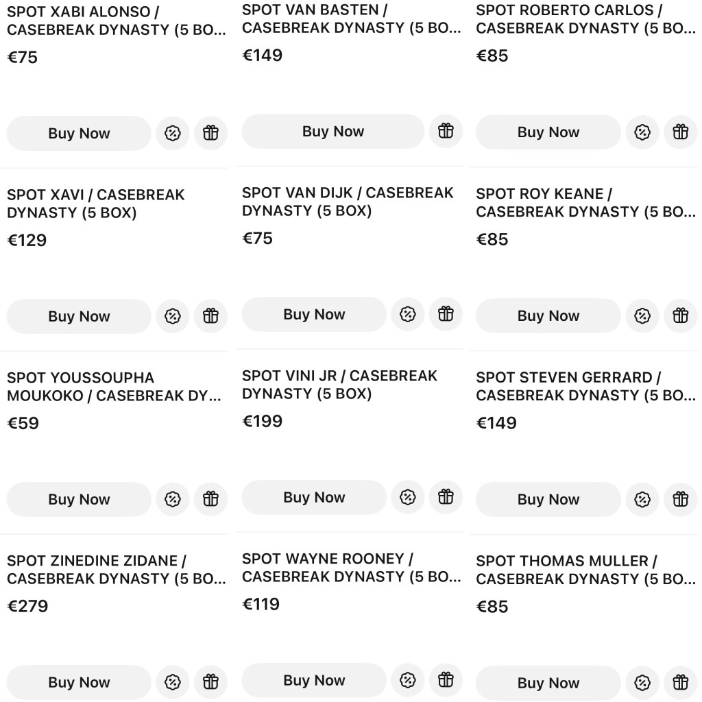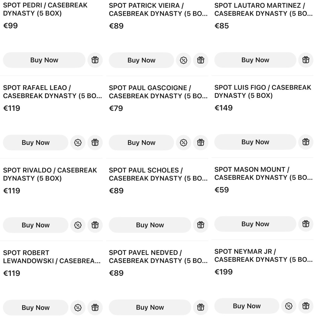 Mais pour Topps et le Hobby Football c’est un évènement à ne pas rater même si c’est juste pour venir faire les curieux sur le live ! Comme il a été dit ci-dessus il y a un risque de rien toucher et pour cette raison que dans tous les cas les acheteurs de spot recevront automatiquement un pack de Topps Chrome (UCC ou Bundesliga) pour leur participation. Topps UCL Dynasty contient aussi des cartes Redemption (contacter Topps pour obtenir la carte définitive), et lors de ce break elles seront incluses dans le spot de joueurs moins désirables (« recoucou Moukoko »). En cas de carte double auto, il y aura un tirage au sort en proportionnalité d’achat (exemple : pour un spot à 3€ contre un spot à 7€ il y aura « une roue » pour déterminer qui aura la carte, 3 fois le nom de la personne du spot à 3€ contre 7 nom de la personne du spot à 7€ pour un total de 10 noms).