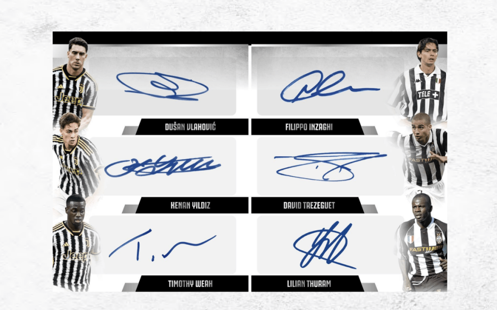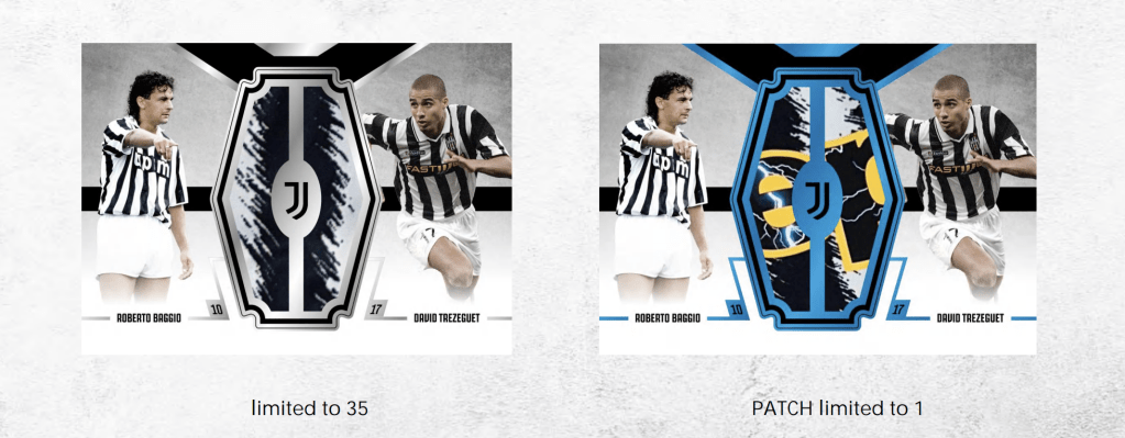 Chaque box contient 5 packs avec 5 cartes par packs. De plus vous retrouverez dans chaque pack une carte auto gradée par CGC ou 2 cartes patch / dual patch gradée par CGC. Comme à son habitude vous retrouverez un mélange de joueurs actuels et de légendes du club : Yildiz, Vlahovic, Trezeguet, Thuram, Bremer, Chiesa… On notera l’inclusion du mythique Roberto Baggio !