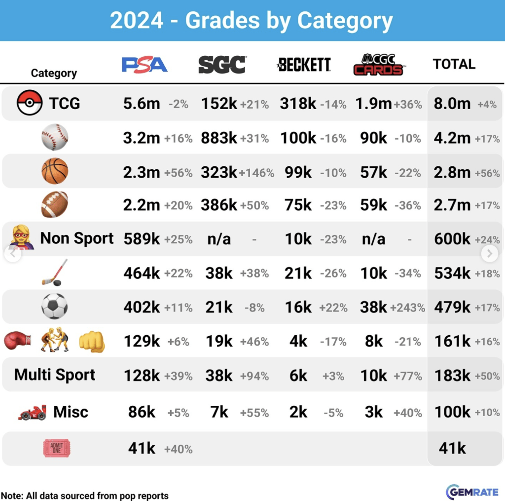 GemRate vient de nous dévoiler les statistiques du grading pour l’année 2024. Pour ceux qui ne connaissent pas GemRate, c’est un site/compte instagram qui publie chaque mois les statistiques du grading dans le Hobby. Ils viennent de publier les stats pour 2024 et nous vous présentons ici les résultats de ce qui nous interessent: le football!