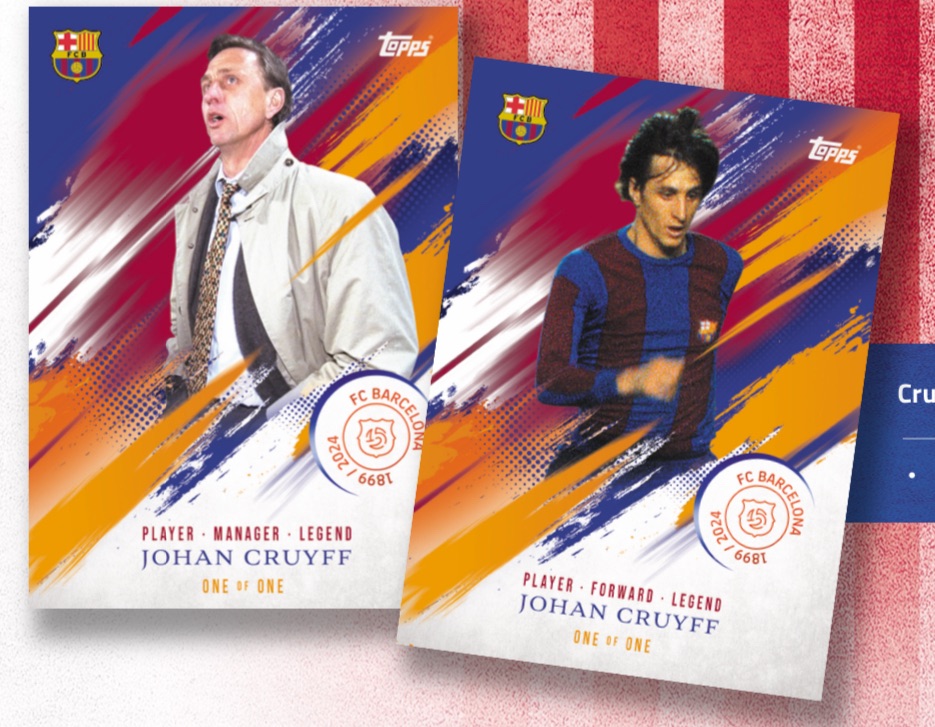 Vous retrouverez bien sur toutes les légendes du club aussi bien en base, relic et auto, mais Topps nous promet quelques nouveautés très sympas! Dans un premier temps vous trouverez les premières cartes officielles de Topps de Johan Cruyff, coach et joueur légendaire du Barca.